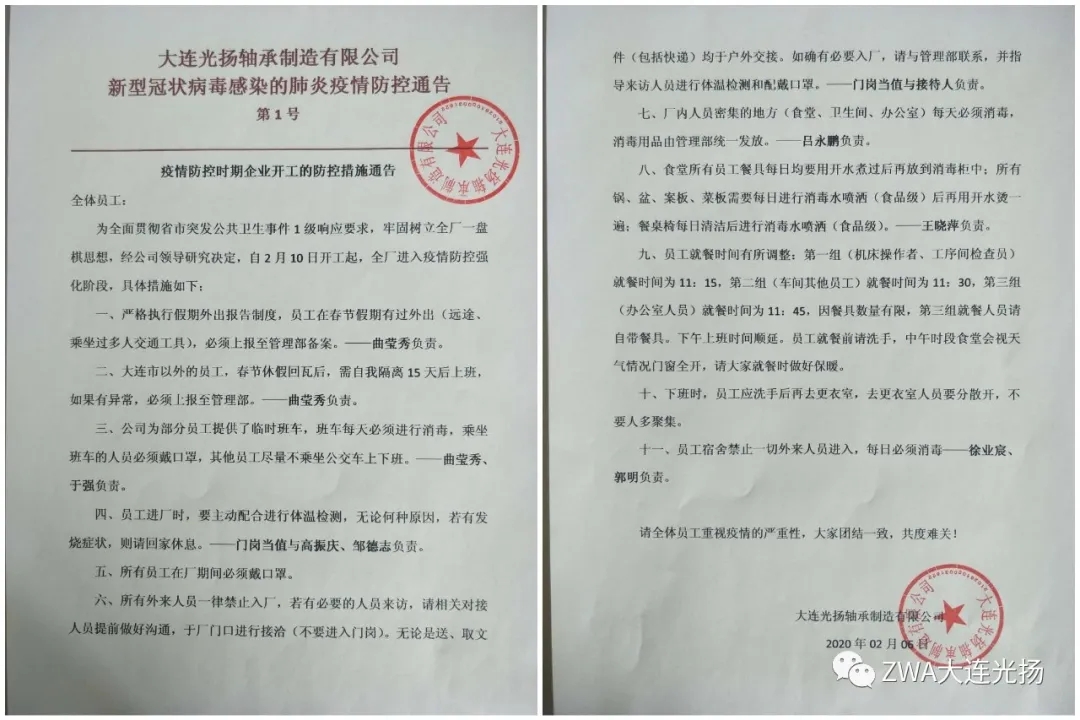 這次疫情,如同一場無聲的戰(zhàn)爭,在這次戰(zhàn)斗中,大連光揚(yáng)軸承制造有限公司的領(lǐng)導(dǎo)班子不等不靠、先知先覺迅速做出抗疫響應(yīng):